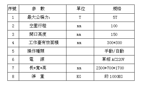 3:機械安全部分工作臺經過真空調質處理,表面電鍍處理長期使用不變形,不生銹。裝卸模具之設計簡單,方便,快捷。操作面可加裝紅外線安全裝置。雙手同步操作,急升保護裝置。